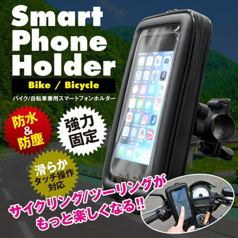 商品名 バイク/自転車兼用 スマートフォンホルダー 商品情報 ● 防水&防塵カバー 突然の雨やホコリから大切なスマートフォンを守ります。