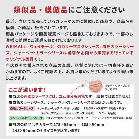 ▼検索キーワード やわらかマスク WEIMALL カラー不織布マスク 血色不織布マスク おしゃれマスク 不織布 オシャレマスク マスク 箱 在庫あり マスク 在庫あり 即日発送 使い捨てマスク 在庫あり マスク 50枚 100枚 200枚 300枚 400枚 500枚 1000枚 2000枚 4000枚 6000枚 10000枚 使い捨てマスク マスク 使い捨て フリーサイズ 乾燥 風邪対策 PM2.5 花粉 花粉症 花粉対策 まとめ買い マスク 在庫あり 使い捨てマスク 在庫あり 防護マスク 防塵マスク 敬老の日 母の日 父の日 ギフト 誕生日 プレゼント 父の日ギフト 誕生日プレゼント 結婚祝い 福袋 メンズ レディース 男性 女性 あす楽 人気 おすすめ 送料無料 WEIMALL GARAGECOLLECTION◆両面同色でかっこよく見せるマスクはこちら マスク ラインナップ 不織布マスク 50枚 不織布マスク 100枚 2箱 不織布マスク 150枚 3箱 不織布マスク 200枚 4箱